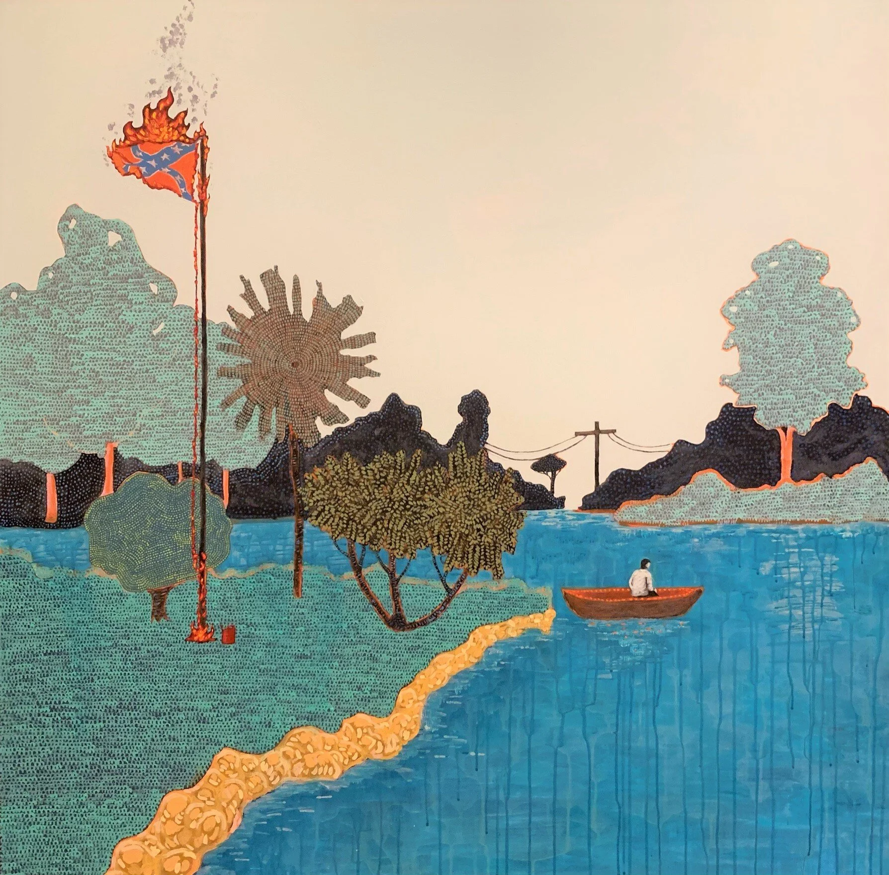 American Civil War is a body of work created during the tumultuous last year by Italian-born and Silver Spring, MD-based artist Andrea Limauro. Limauro speculates that the bloodiest conflict fought by the United States did not end in 1865 at Appomattox Court House. Instead, the fight over equal rights moved to a prolonged 150 year “cold war” that culminated but did not end with confederate flag waving rioters storming the Capitol on January 6 of 2021. The end of the Civil War provided no real closure for the country as the leaders and symbols of the Confederacy suffered little or no consequences and were instead allowed to shape the body politic of the post-conflict South, and the nation generally, for decades. Thus, the battle for the soul of the nation would rage on through the Reconstruction, Jim Crow, the Civil Rights movement, and is still reflected in the contemporary Unite the Right and Black Lives Matter rallies.